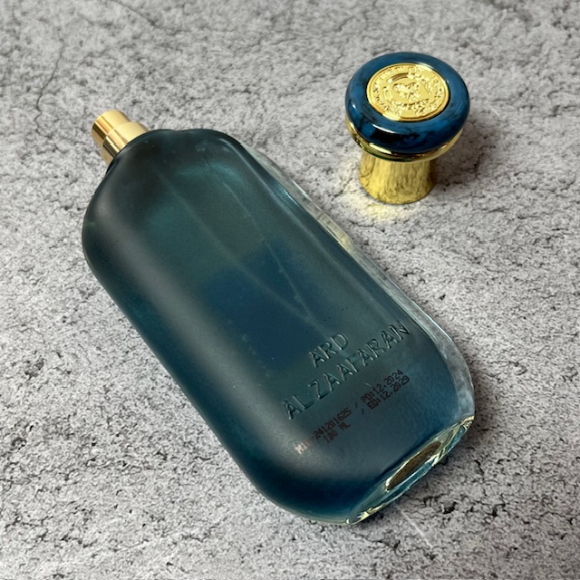 عطر موصوف آبی ارض الزعفران، عطری خنک، دریایی و پرانرژی است که با نتهای مرکباتی آغاز شده، در قلب خود رایحهای گیاهی و ادویهای دارد و در نهایت با پایهای چوبی و مشکی ماندگار میشود. طراحی بطری آبیرنگ، ماندگاری خوب، پخش بوی مناسب و قیمت اقتصادی، این ادکلن را به انتخابی عالی برای آقایان خوشسلیقه در فصول گرم سال تبدیل کرده است.