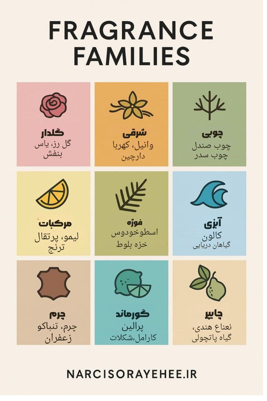 💡 در نارسیسو رایحه میتوانید بر اساس خانواده بویایی، عطر دلخواهتان را انتخاب کنید.