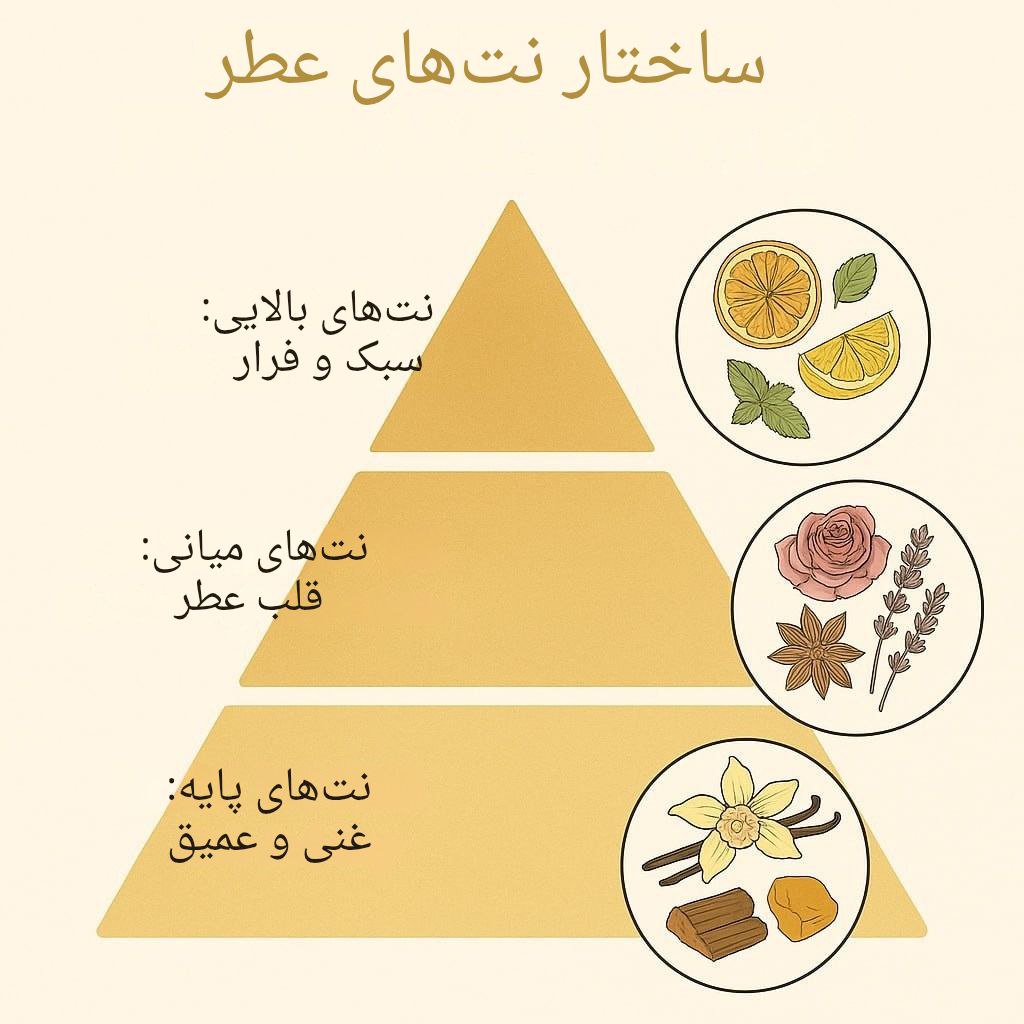 💡 هنگام خرید عطر، حداقل ۳۰ دقیقه صبر کنید تا نتهای میانی و پایه روی پوست خود را نشان دهند.