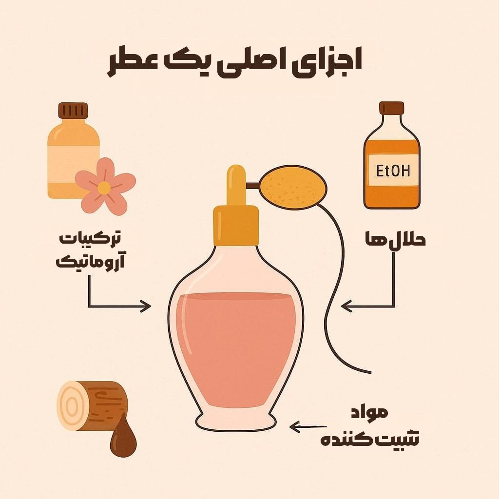 - تثبیتکنندهها: مثل صمغ کندر یا Ambroxan برای افزایش ماندگاری.
